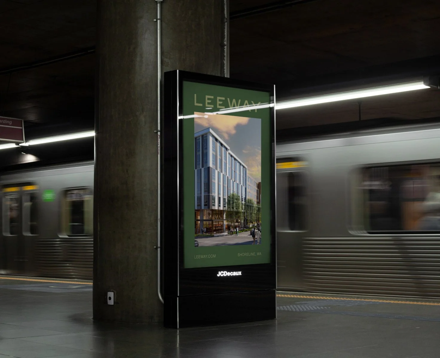 Conveniently located with easy access to the train for commuters heading to Seattle, the heart of the Leeway project was to design an identity that radiates calm and tranquility. An escape from the busy city life. Drawing inspiration from the serene landscapes of the Pacific Northwest, we shaped a visual identity that offers a peaceful sanctuary for its future residents.